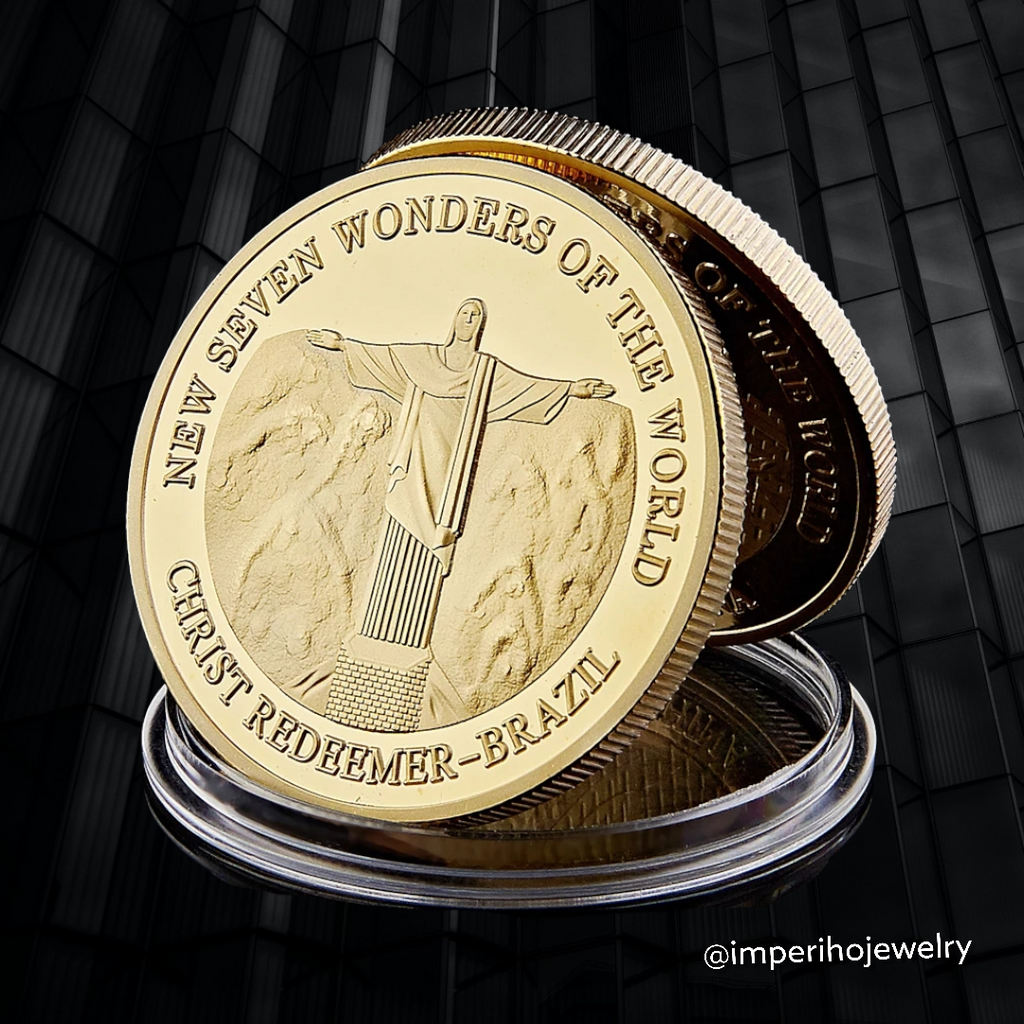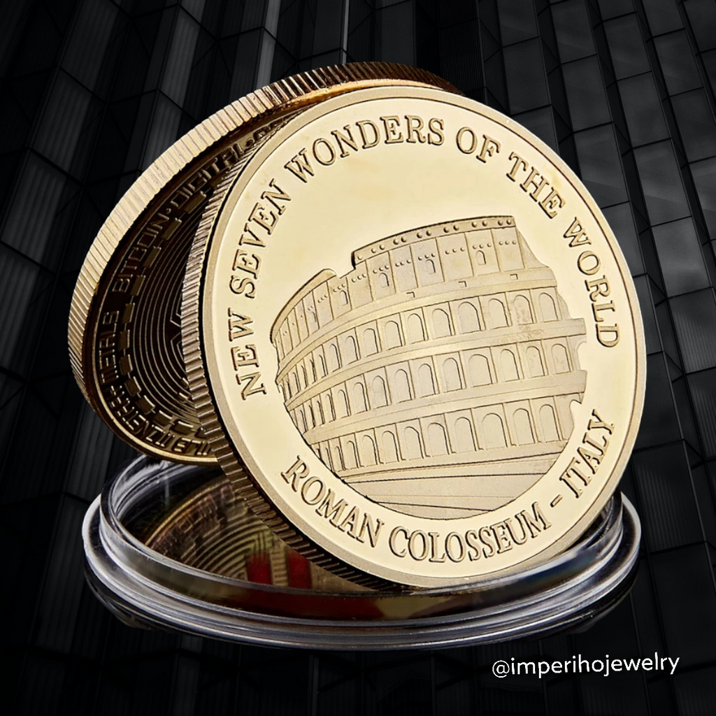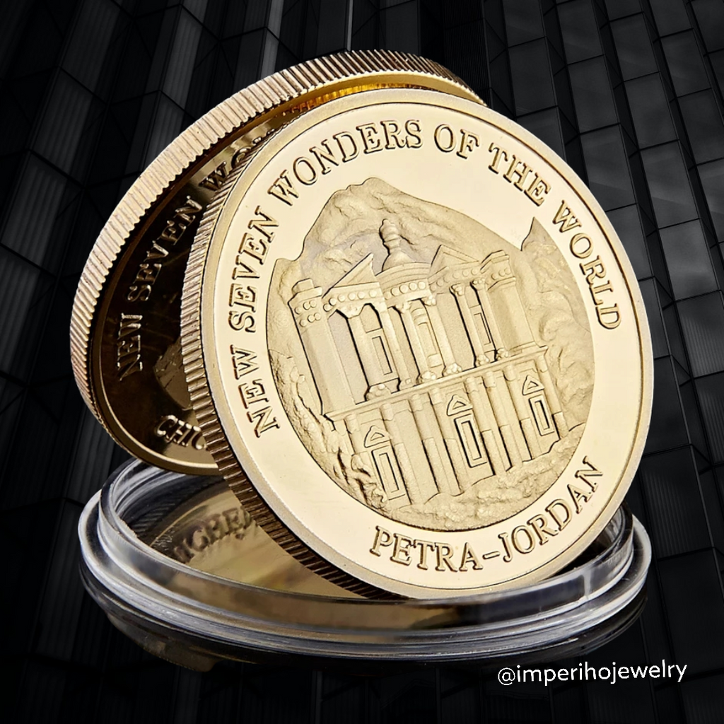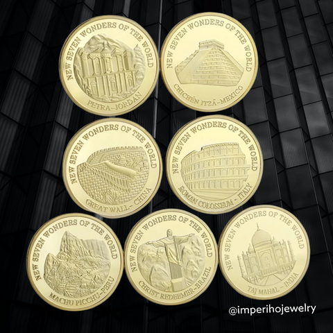 Discover our collection of solid 24K pure gold coins featuring designs of the 7 Wonders of the World. Each coin represents one of the wonders of the world and is recreated with fine details, a shiny and matte finish on the most precious physical material that exists: 24-karat pure gold.