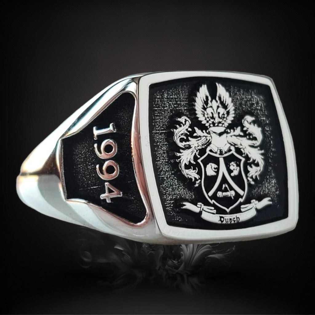 Hecho a pedido - Anillo de sello de plata macizo grabado con el logotipo de su universidad, el escudo de su familia o cualquier otra imagen que solicite.