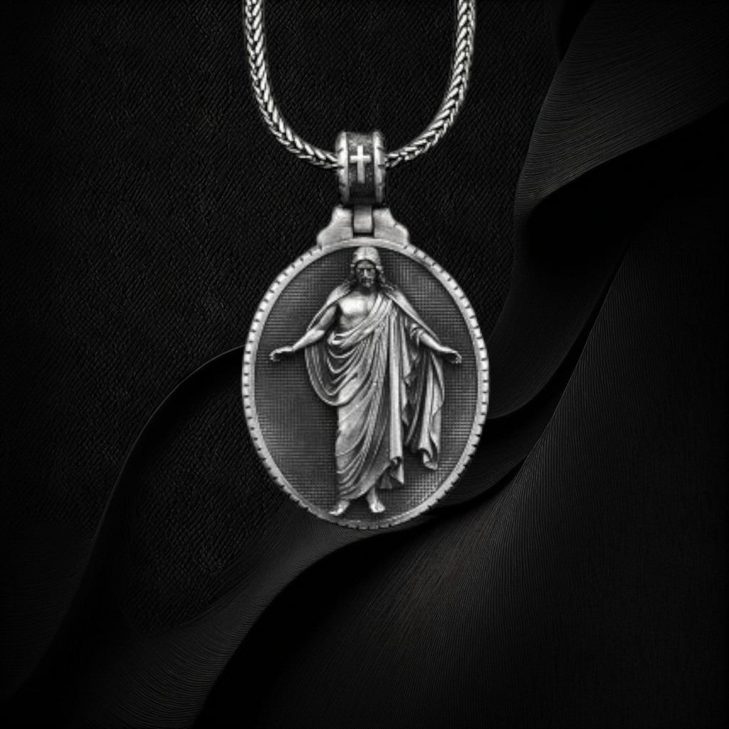 El collar de Jesús Resurrección de plata esterlina 925K. Las fotos se toman con el producto original y cada artículo tiene detalles grabados hechos a mano. Es muy elegante y sofisticado para el uso diario, pero también puede ser preferido como un regalo para un cristiano en memoria eterna.