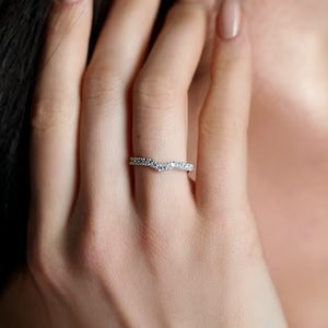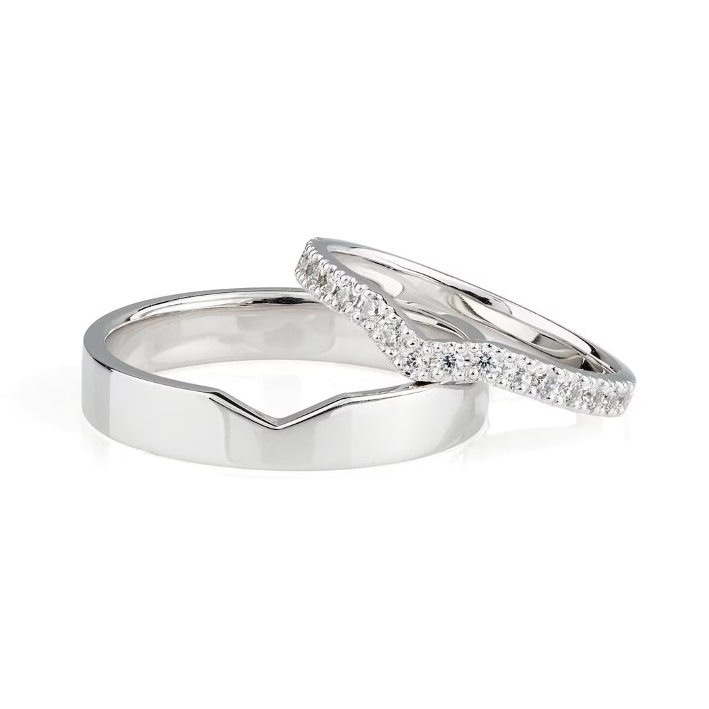 Matching wedding bands made of solid 14k gold and shinny stones.